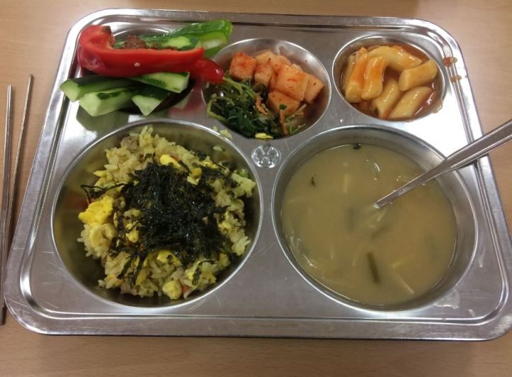 January 9, 2017January 9, 2017CarolineLaBate 5 fresh vegetables, kimchi radish, tteokpoki (rice cake) mixed rice with vegetables, egg, tuna, seaweed mushroom soup